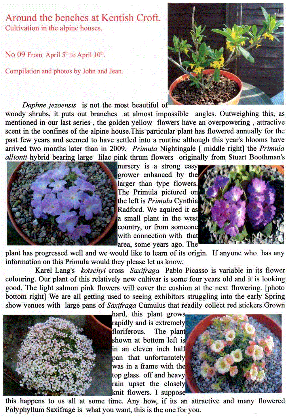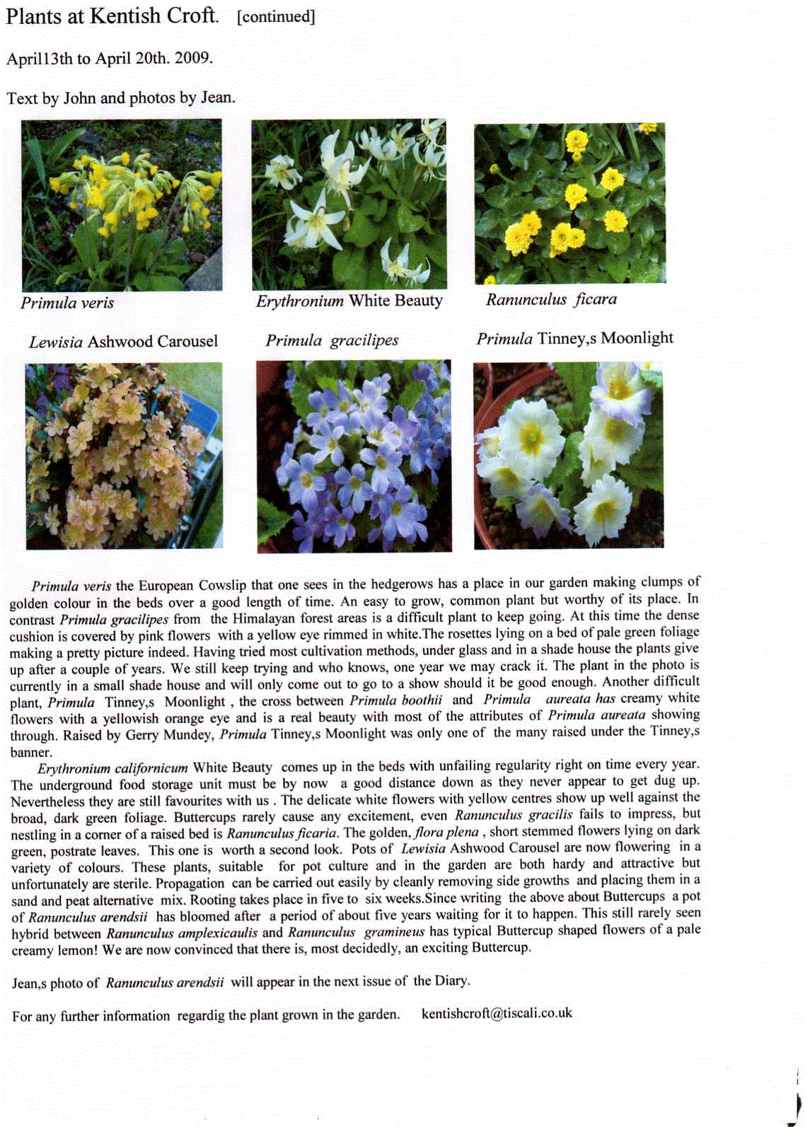 show his diary as a tribute to a highly accomplished plantsman. The 2009 diary covers the full year in 36 parts. Click here
