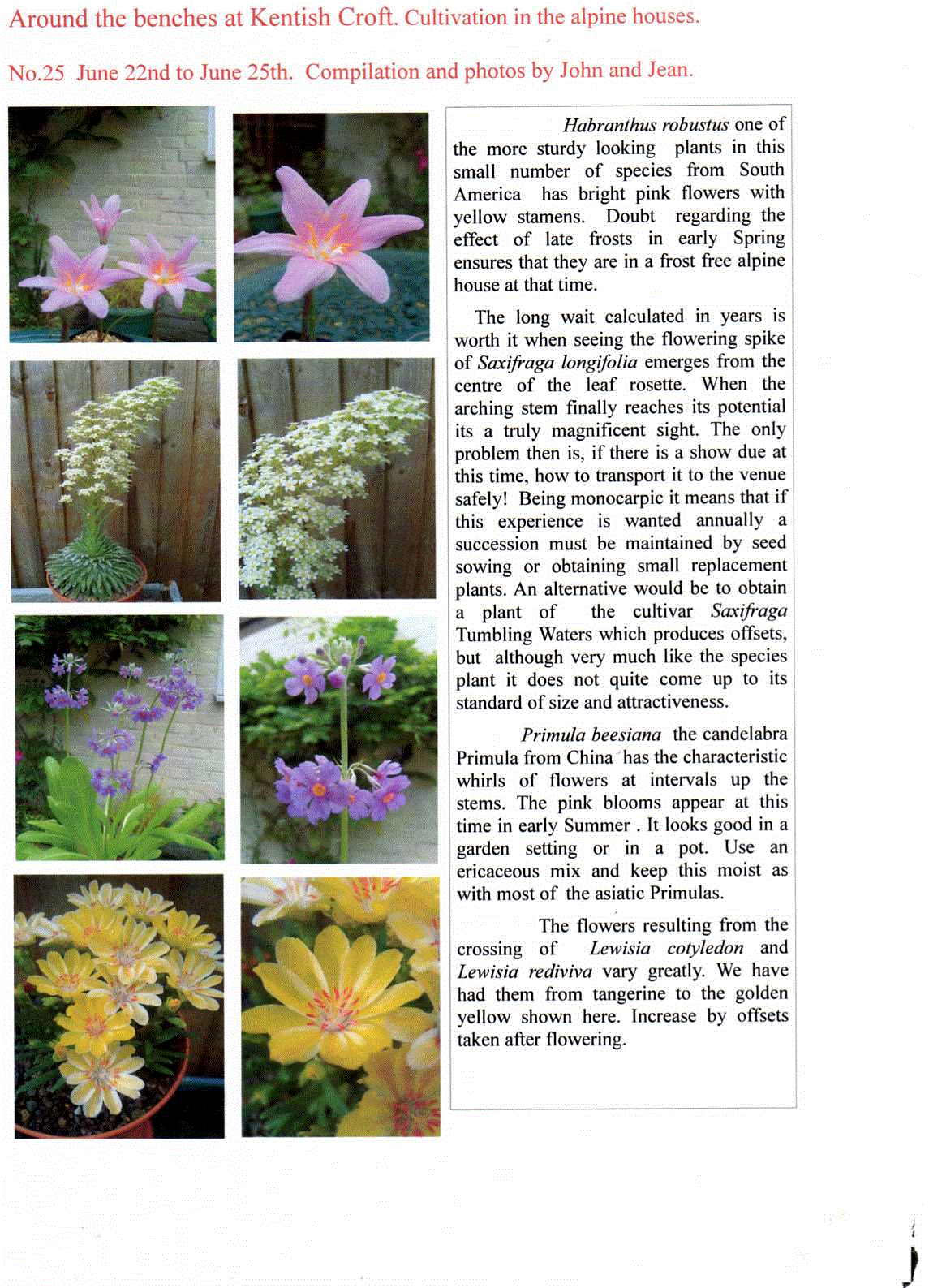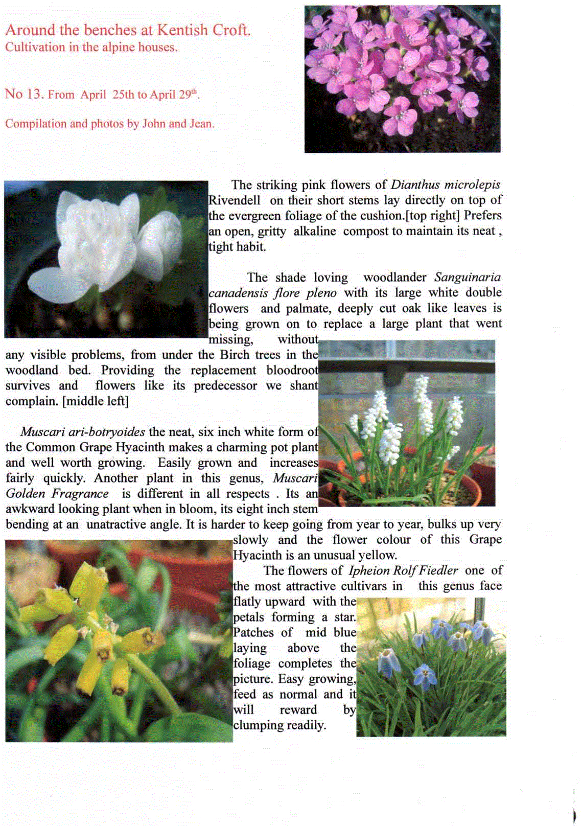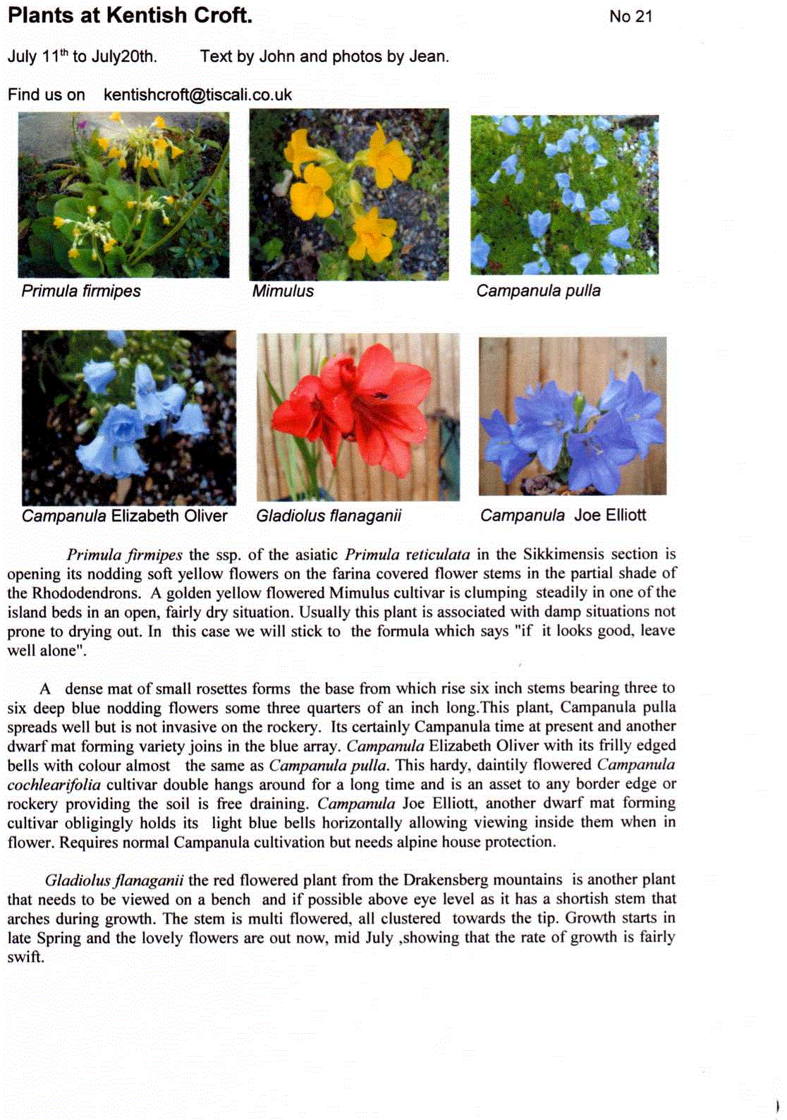 Diaries" showing the plants at Kentish Croft, their fabulous garden near